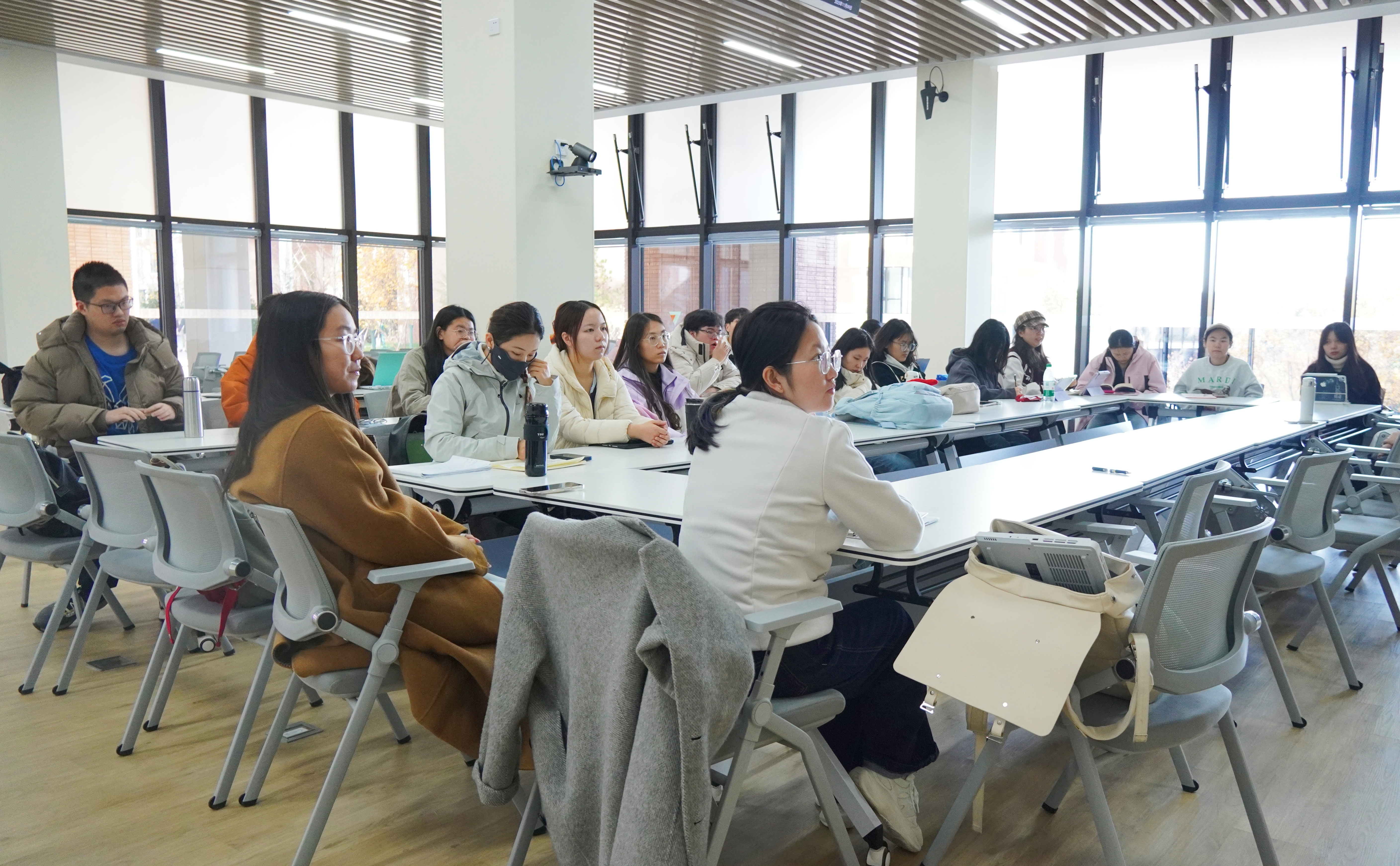 交流互动环节气氛热烈,学员们围绕主题展开深入研讨。陈一览补充分享了现场观礼的震撼瞬间与接受媒体采访的实践感悟,进一步深化了学员们对重大活动时代意义的理解。
